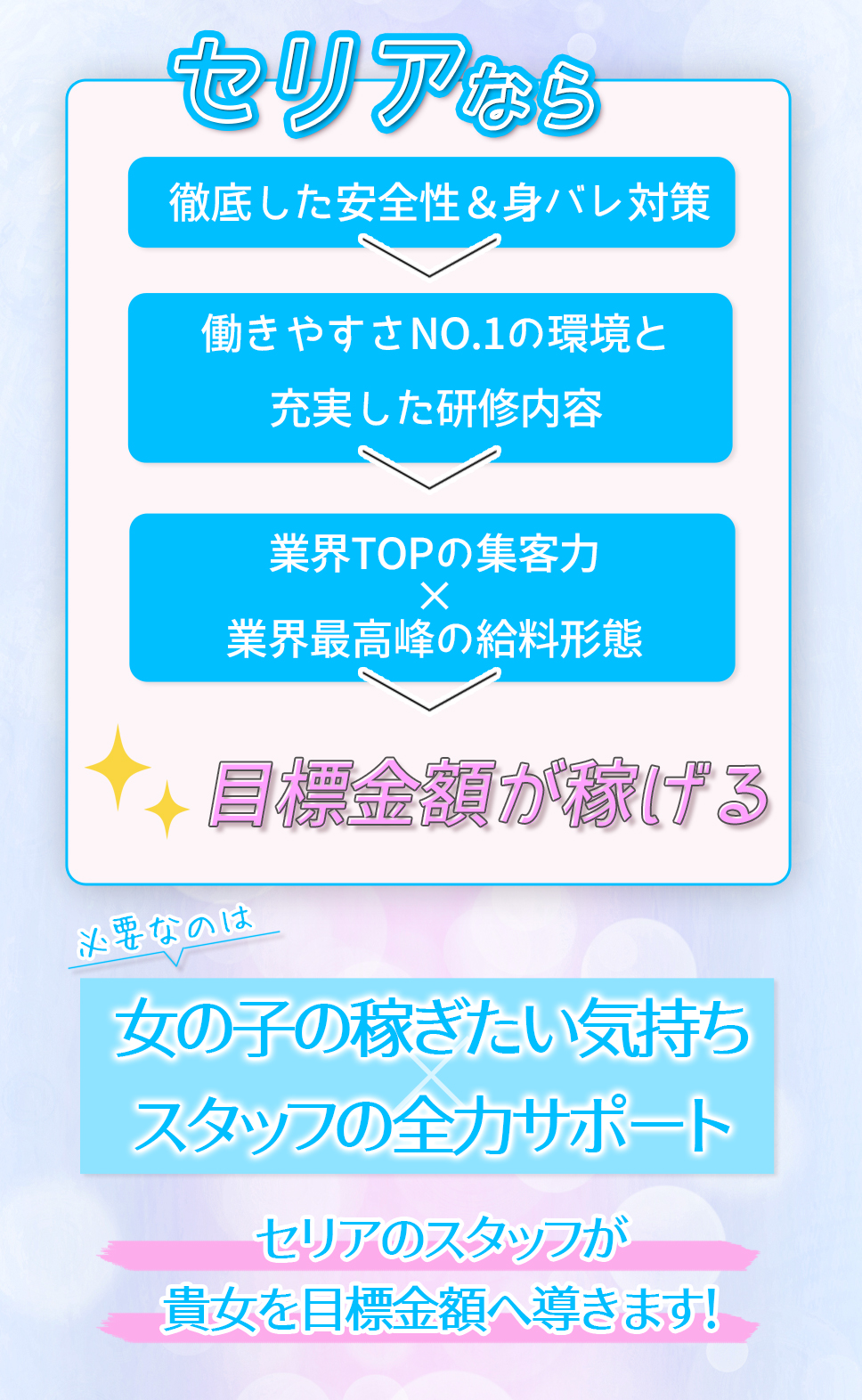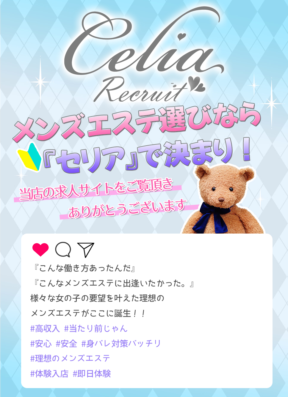こちらからノルマやペナルティなどは一切ございませんのでご安心下さい♪ 一緒に頑張っていただけるセラピストさんには別途手当も支給しております!