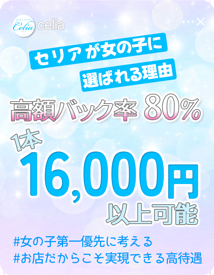 | 給与 | 1高額バック率80% 90分1本で16,000円以上可能 |